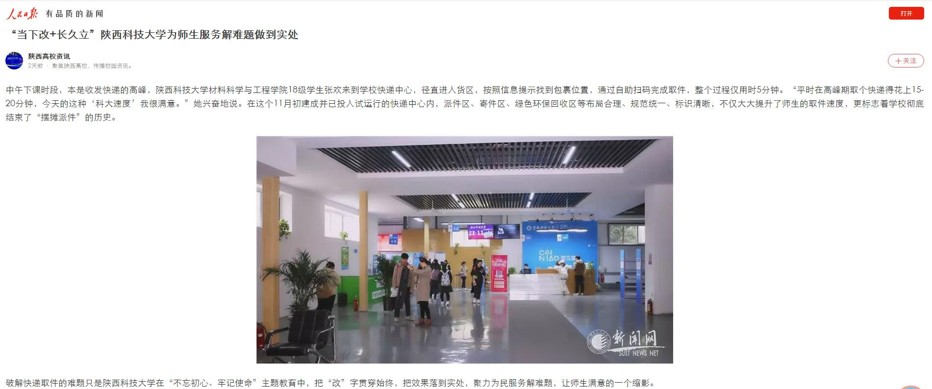 人民日報APP:“當下改+長久立”陜西科技大學為師生服務(wù)解難題做到實處