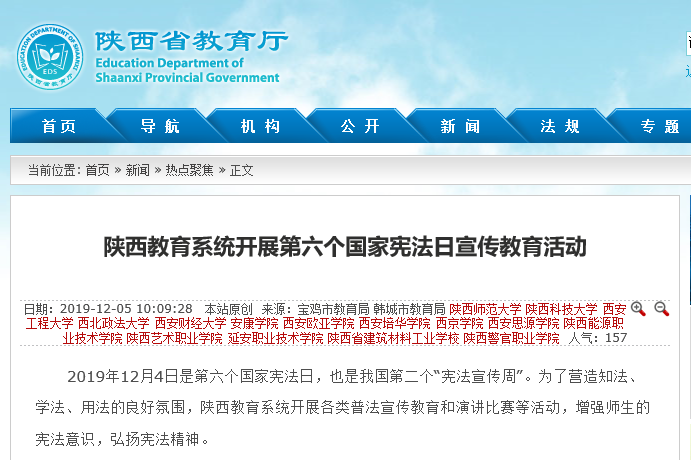陜西教育系統(tǒng)開展第六個國家憲法日宣傳教育活動