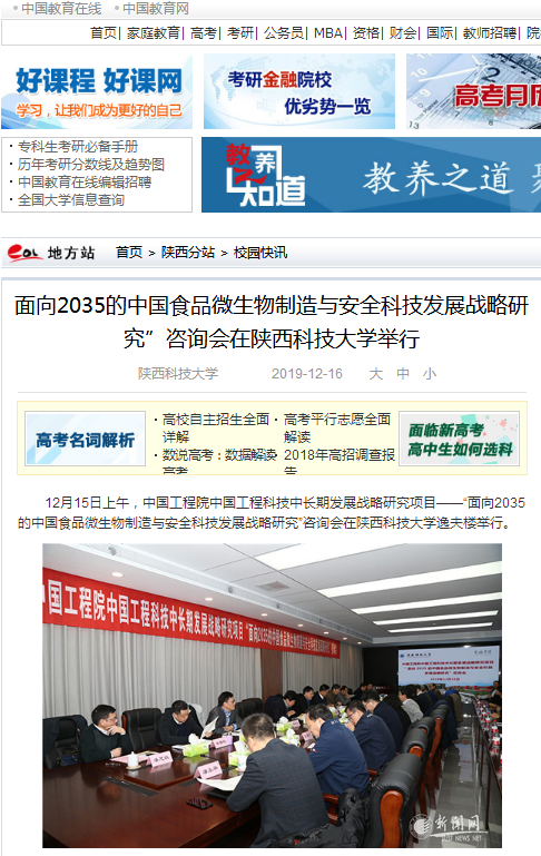 近日,中國(guó)教育網(wǎng)、西部網(wǎng)、今日頭條等媒體紛紛報(bào)道面向2035的中國(guó)食品微生物制造與安全科技發(fā)展戰(zhàn)略研究”咨詢會(huì)在陜西科技大學(xué)舉行。
