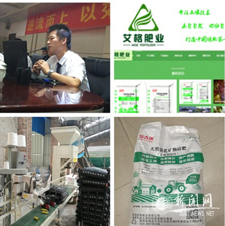 團隊2015級研究生宋建波(學號:1502002,專業(yè):材料科學與工程)經過兩年多的試驗和探索,通過整合團隊及自身的技術和優(yōu)勢資源,2017年在國家級科技企業(yè)孵化器楊凌示范區(qū)創(chuàng)新創(chuàng)業(yè)園,注冊企業(yè):陜西艾格肥業(yè)有限公司,目前企業(yè)在陜西黃龍,陜西大荔已建成兩條年產2萬噸硅肥及土壤改良劑生產線,2017年底,企業(yè)產值1400余萬元。