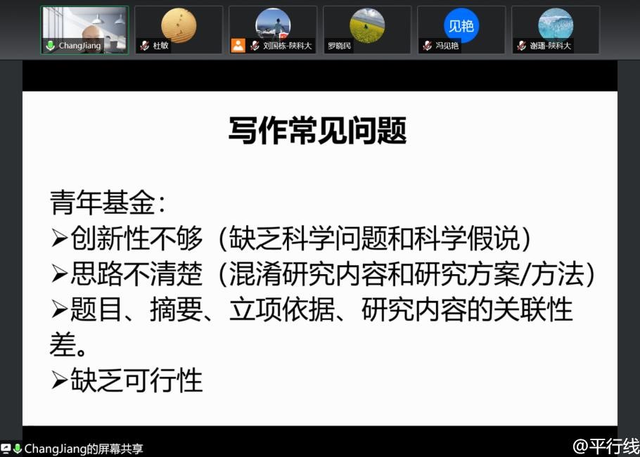 常江研究員的報(bào)告圍繞著國家自然科學(xué)基金概述、申請書撰寫和常見問題三個方面展開。他指出,國家自然科學(xué)基金的選題非常重要,優(yōu)秀的選題是項(xiàng)目申請的立身之本,選題一定要具有科學(xué)性、創(chuàng)新性和可行性。在申請書寫作過程中,摘要和研究背景需要反復(fù)斟酌,科學(xué)問題必須要明確,研究內(nèi)容條理要清晰,研究方案要具體可行,要注重開展前期預(yù)實(shí)驗(yàn)研究,另外要注意寫作的整體邏輯性和前后呼應(yīng)。