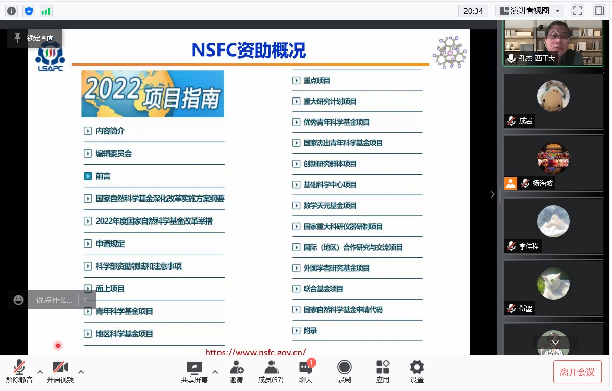 首先,孔杰教授分析了近幾年工材學(xué)部和化學(xué)學(xué)部等相關(guān)學(xué)部的項(xiàng)目申報(bào)和資助情況,結(jié)合最近發(fā)布的國家自然科學(xué)基金指南,對基金項(xiàng)目的選題和申報(bào)提出了合理的意見和建議,鼓勵教師們要讀懂指南、增強(qiáng)信心、珍惜機(jī)會。然后,以“夯實(shí)基礎(chǔ)、凝練問題、掌握規(guī)律、精細(xì)打磨”為標(biāo)題,結(jié)合自己的項(xiàng)目申報(bào)經(jīng)驗(yàn),詳細(xì)講解了基金申報(bào)書中的立項(xiàng)依據(jù)、研究內(nèi)容、研究目標(biāo)、關(guān)鍵科學(xué)問題、創(chuàng)新與特色,研究基礎(chǔ)等各個(gè)部分的撰寫思路和注意事項(xiàng)。最后,孔杰教授結(jié)合自己的成長經(jīng)歷,介紹了青年教師應(yīng)該如何規(guī)劃自己的研究生涯,為青年教師的職業(yè)發(fā)展提供了很好的啟迪和幫助。