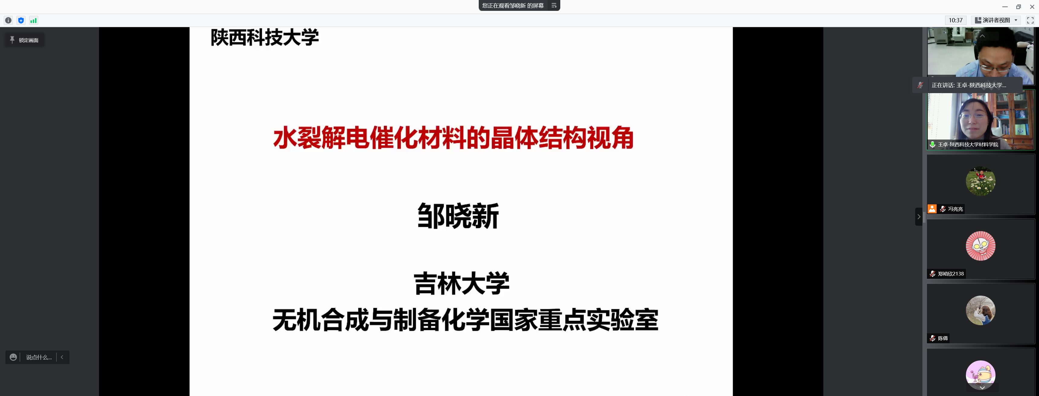 1月15日下午,應我校材料科學與工程學院邀請,吉林大學鄒曉新教授做客我?!扒把乜茖W報告”,作了題為“水裂解電催化材料的晶體結構視角”的線上學術報告。報告由材料學院副院長王卓主持,我校部分教師及相關專業(yè)研究生參加了本次報告。