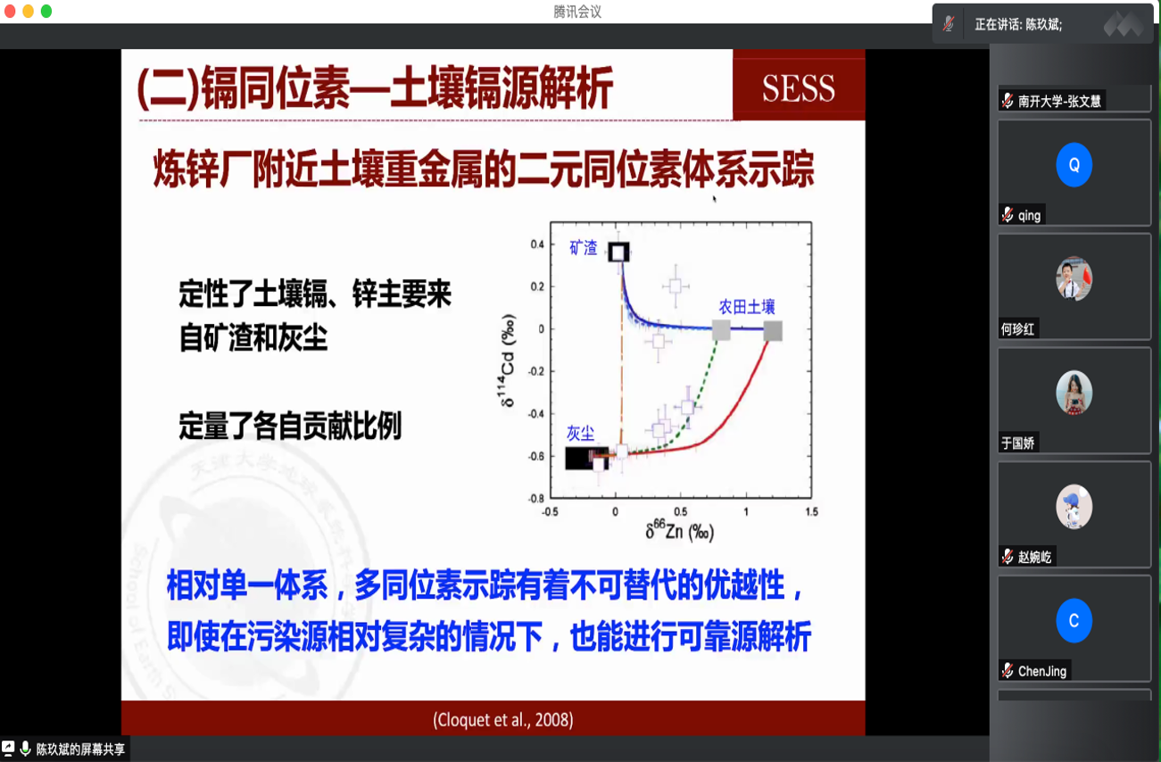 12月21日,受環(huán)境科學(xué)與工程學(xué)院邀請,南方科技大學(xué)傅宗玫教授、天津大學(xué)陳玖斌教授做客我校“前沿科學(xué)報(bào)告”,并分別以“大氣有機(jī)氣溶膠關(guān)鍵組分的來源、演化及環(huán)境效應(yīng)”“大金屬穩(wěn)定同位素在環(huán)境健康領(lǐng)域的潛在應(yīng)用”為題作了精彩的學(xué)術(shù)報(bào)告,環(huán)境學(xué)院及其他兄弟院校、科研院所師生200多人在線參加了會議。環(huán)境學(xué)院陳慶彩教授主持會議。