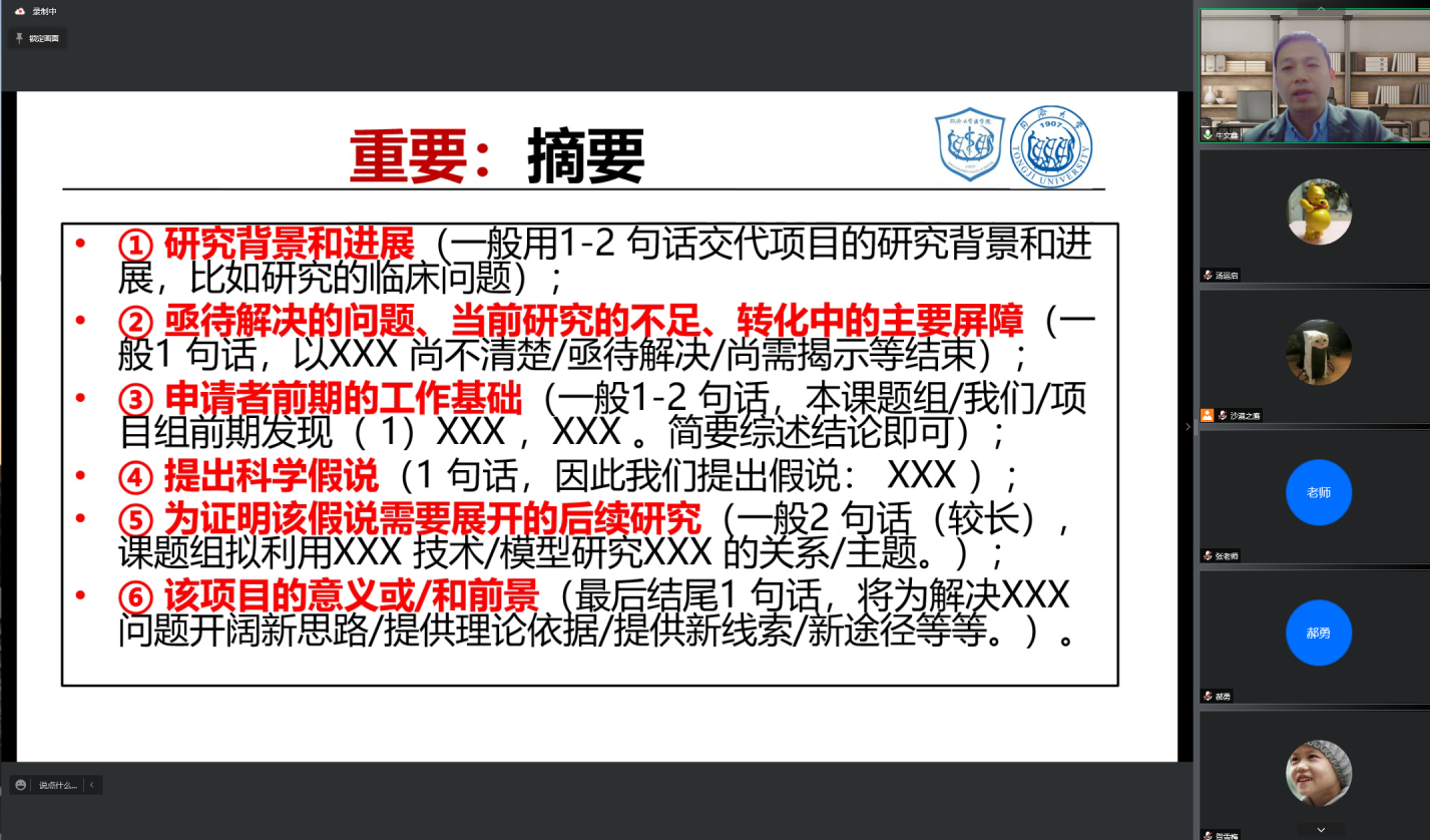 12月16日晚,應(yīng)設(shè)計(jì)與藝術(shù)學(xué)院與科技處邀請(qǐng),同濟(jì)大學(xué)牛文鑫教授云端做客我?!扒把乜茖W(xué)報(bào)告”,作了題為“國家自然科學(xué)基金申請(qǐng)書撰寫規(guī)范”的學(xué)術(shù)報(bào)告。報(bào)告會(huì)由設(shè)藝學(xué)院副院長賀雪梅教授主持,學(xué)院全體教師及部分研究生聆聽了此次精彩分享。