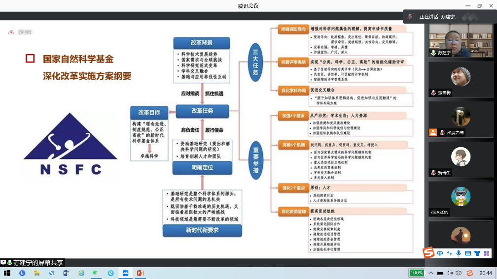國家自然基金申報是一項重要的工作,選題的科學(xué)性、研究的創(chuàng)新性、成果的轉(zhuǎn)化性代表著國家的科研水平,更是高??蒲心芰Φ募畜w現(xiàn),賀雪梅教授希望大家向蘇教授學(xué)習,挖掘自身的研究專長、凝練研究問題、學(xué)習研究方法,持之以恒的堅定信念,在基金申報的道路上不斷學(xué)習、進取、創(chuàng)新。