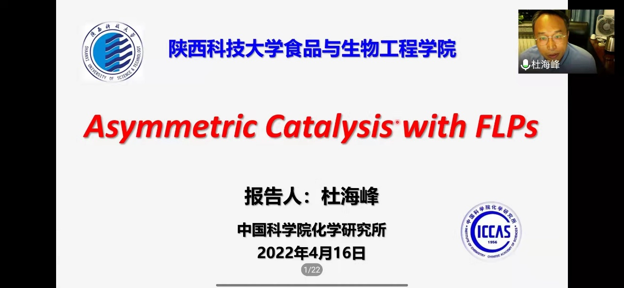 杜海峰研究員主要圍繞路易斯酸堿對(FLPs)化學(xué)進(jìn)行了匯報(bào)。主要介紹了FLPs化學(xué)目前存在的一些優(yōu)勢、問題以及挑戰(zhàn),接著介紹了他們課題組的主要工作,即以亞胺、烯醇硅醚、芳香雜環(huán)為底物的不對稱催化氫化反應(yīng)和以吡啶、手性氨硼烷、簡單酮為底物的催化氫化反應(yīng)的反應(yīng)機(jī)理和催化劑的設(shè)計(jì)思路。