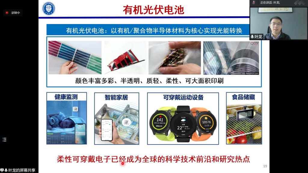 5月9日下午,應(yīng)我校輕工科學(xué)與工程學(xué)院、科技處及前沿院邀請,天津大學(xué)葉龍教授做客我?!扒把乜茖W(xué)報(bào)告”,以“可拉伸柔性有機(jī)光伏器件的機(jī)遇與挑戰(zhàn)”為題進(jìn)行線上學(xué)術(shù)報(bào)告。報(bào)告由輕工學(xué)院副院長劉國棟主持,學(xué)院及其他相關(guān)專業(yè)教師、研究生參加了此次報(bào)告會。