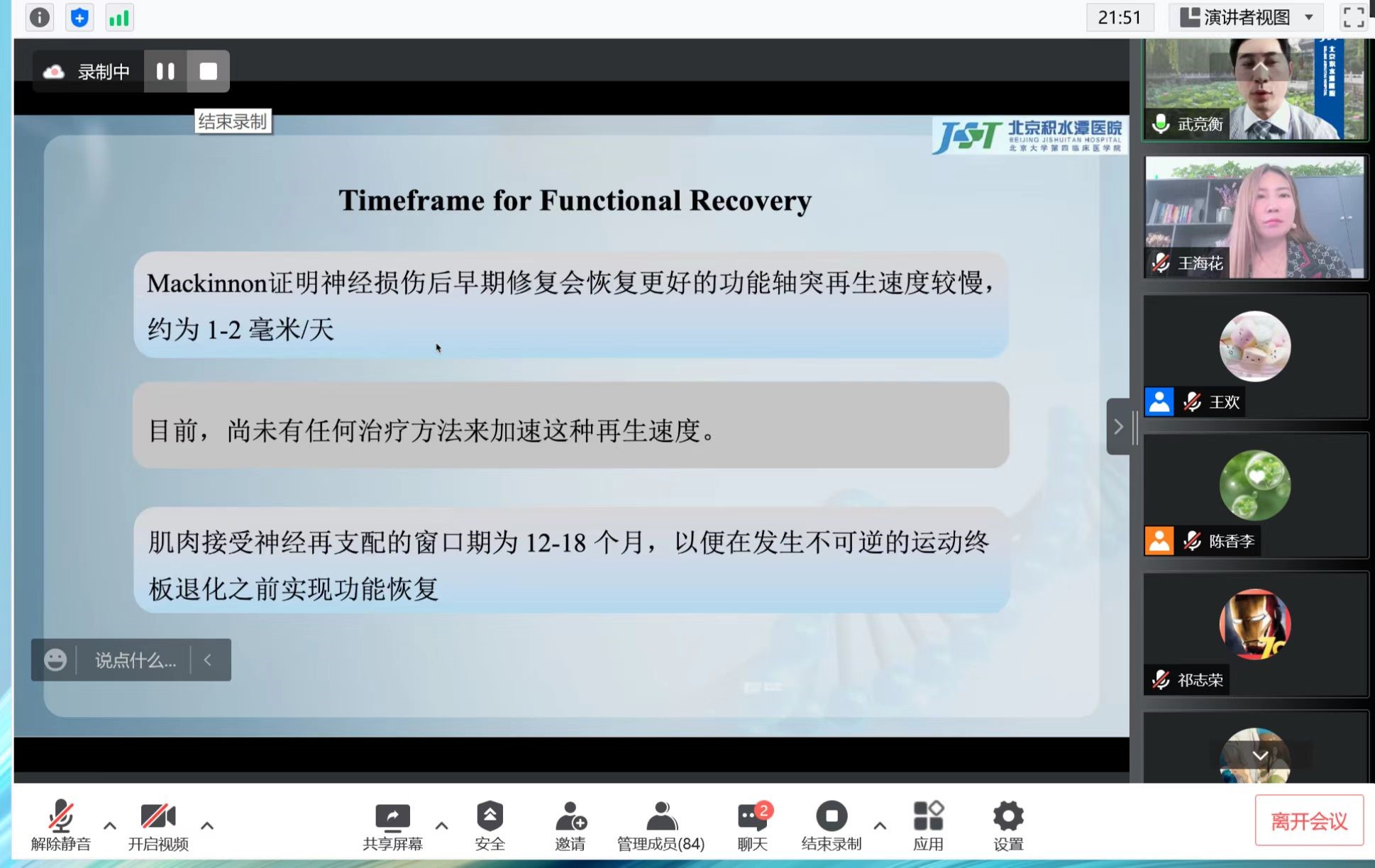 武競衡醫(yī)師針對周圍神經(jīng)解剖、神經(jīng)的生理、神經(jīng)損失的分級、神經(jīng)損失的修復(fù)、神經(jīng)修復(fù)的結(jié)果以及周圍神經(jīng)損失修復(fù)的研究六個方面進行了詳細的介紹與講解,并總結(jié)了目前臨床上關(guān)于神經(jīng)修復(fù)的一些技術(shù)手段及面臨的挑戰(zhàn)。