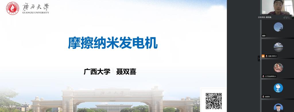 5月31日下午,應(yīng)我校輕工科學(xué)與工程學(xué)院、科技處及前沿院邀請,廣西大學(xué)聶雙喜教授做客我?!扒把乜茖W(xué)報告”,進(jìn)行了以“摩擦納米發(fā)電機(jī)”為題的線上學(xué)術(shù)報告。報告會由輕工學(xué)院副院長劉國棟主持,學(xué)院及相關(guān)專業(yè)教師、研究生參加了此次報告會。