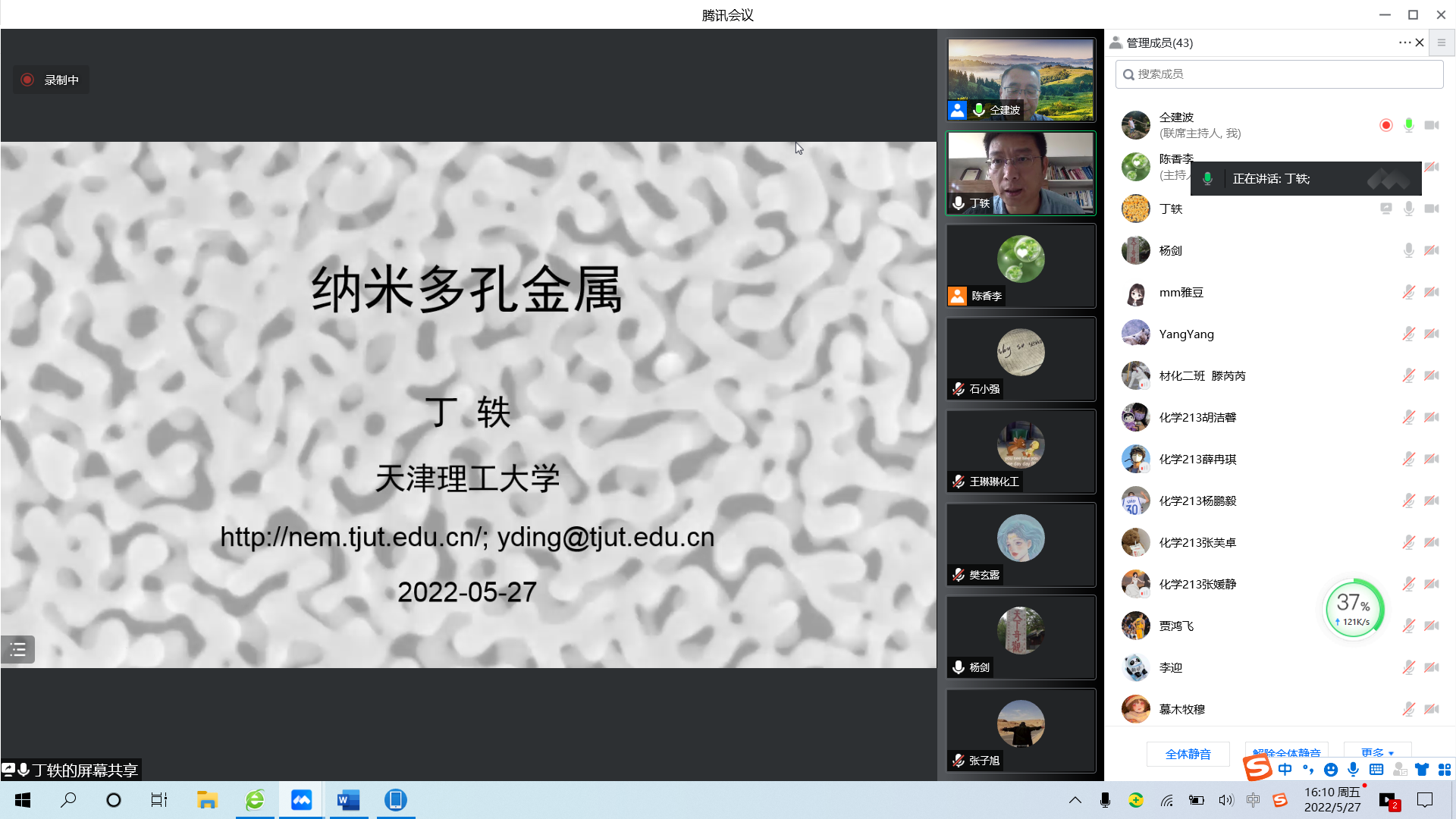 5月27日,應(yīng)我??萍继帯⑶把卦杭盎瘜W(xué)與化工學(xué)院邀請,山東大學(xué)楊劍教授和天津理工大學(xué)丁軼教授做客我?!扒把乜茖W(xué)報告”,分別作了題為“鈉離子電池負(fù)極材料的儲能化學(xué)”和“納米多孔金屬”的報告。報告會由化工學(xué)院副院長仝建波主持,學(xué)院相關(guān)專業(yè)教師、研究生聆聽了此次報告會。
