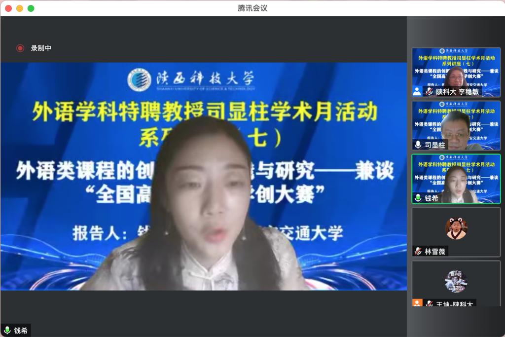 6月27日,西安交通大學外國語學院錢希副教授做客我?!?span style="text-indent: 28px;">未央導師論壇”,做了題為“外語類課程的創(chuàng)新教學實踐與研究——兼談‘全國高校教師教學創(chuàng)新大賽’”的線上報告。報告由我校外語學科特聘教授司顯柱主持,外語師生聆聽了此次報告。文理學院6月組織開展的外語學科特聘教授司顯柱學術活動系列講座,旨在充分發(fā)揮我校特聘教授的學術引領和資源共享作用,推動我校外語學科內涵發(fā)展。