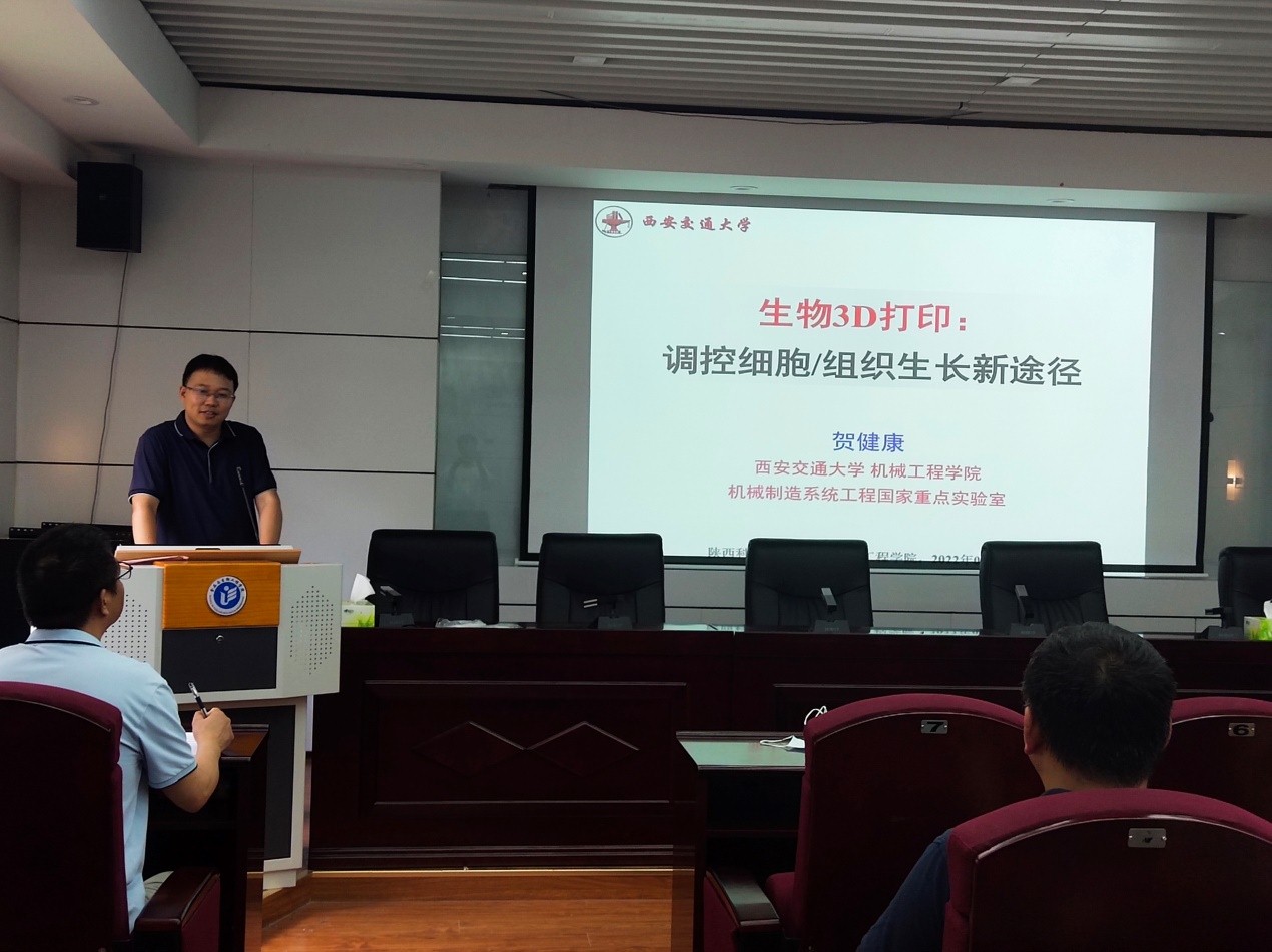7月5日下午,西安交通大學(xué)機(jī)械工程學(xué)院教授賀健康應(yīng)邀做客我?!?span style="text-indent: 28px;">前沿科學(xué)報(bào)告”,以“生物3D打?。赫{(diào)控細(xì)胞/組織生長(zhǎng)新途徑”為題進(jìn)行學(xué)術(shù)報(bào)告,報(bào)告在食品與生物工程學(xué)院學(xué)術(shù)報(bào)告廳進(jìn)行,食品學(xué)院部分教師和研究生代表參加了本次報(bào)告會(huì),報(bào)告由食品學(xué)院院長(zhǎng)助理高翔主持。