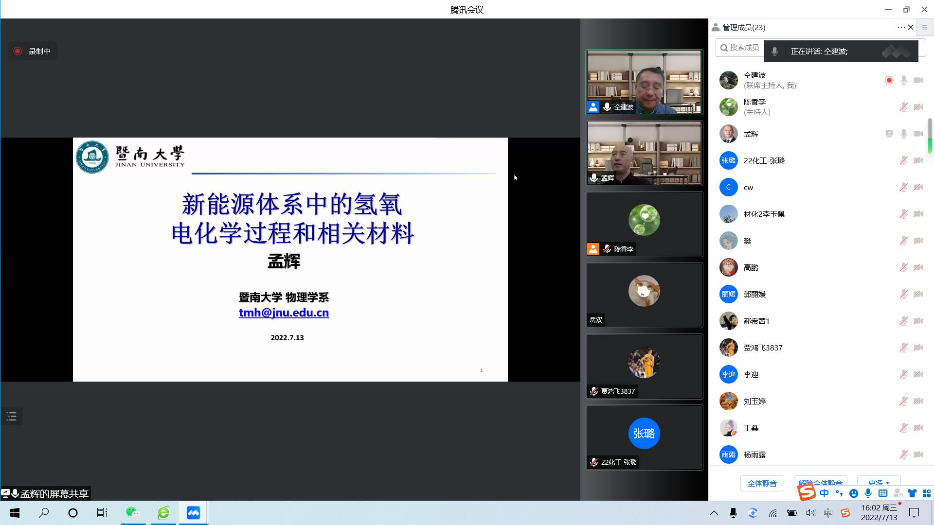 應研究生院及化學與化工學院邀請,蘭州大學翟紅林教授和暨南大學孟輝教授分別于7月11日和13日做客我?!拔囱雽熣搲?,分別做了題為“基于化學圖譜的定量分析新進展”和“新能源體系中的氫氧電化學過程和相關材料”的報告。報告會由化工學院副院長仝建波教授主持,學院相關專業(yè)教師、研究生聆聽了此次報告會。