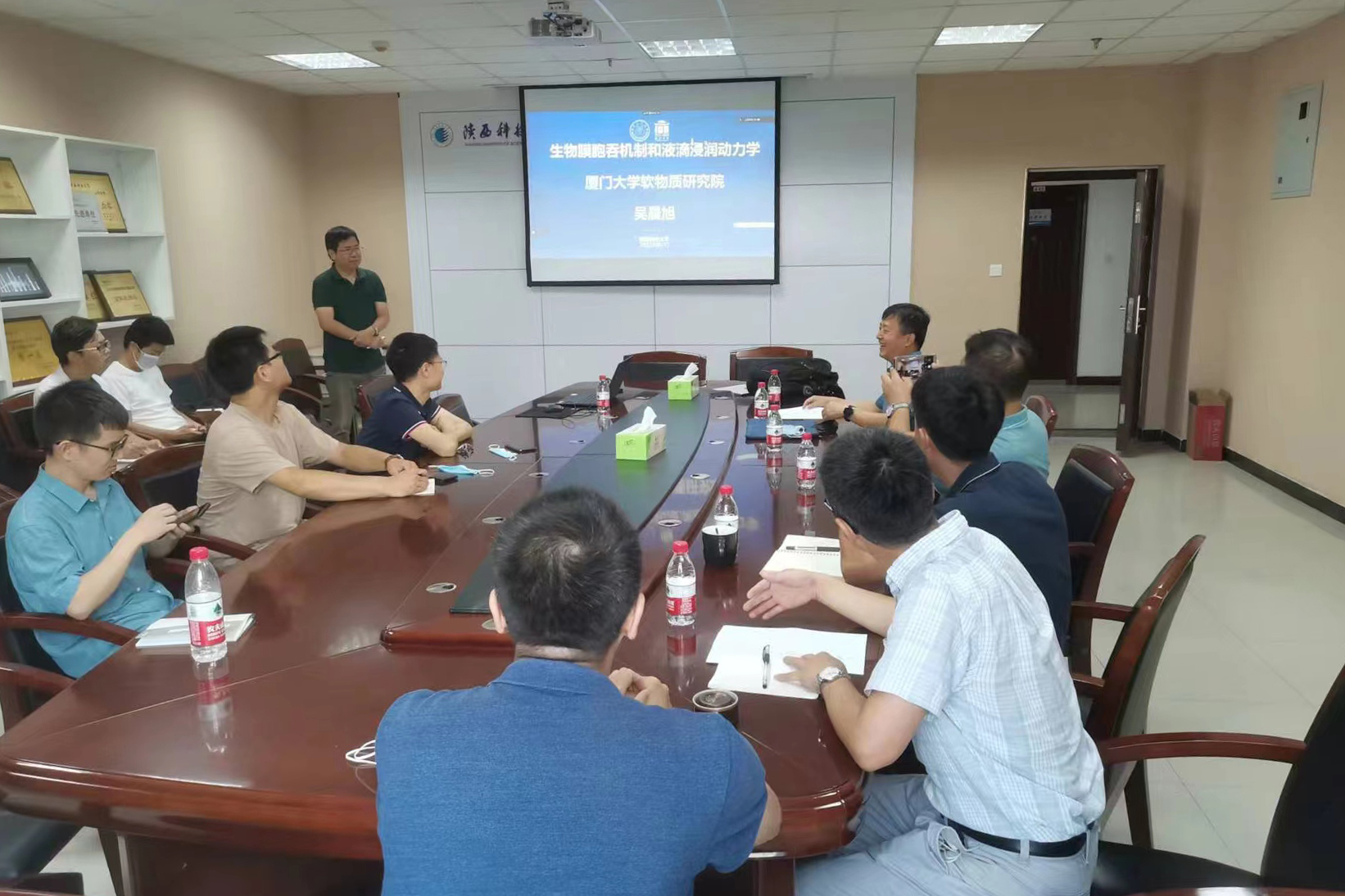 8月17日上午,應(yīng)文理學(xué)院邀請(qǐng),廈門(mén)大學(xué)吳晨旭教授做客我?!扒把乜茖W(xué)報(bào)告”,報(bào)告題目為“生物膜活性顆粒吞噬機(jī)制和液滴浸潤(rùn)動(dòng)力學(xué)”,報(bào)告會(huì)線下和線上同時(shí)進(jìn)行。報(bào)告會(huì)由文理學(xué)院院長(zhǎng)劉建科主持,物理學(xué)科教授、研究生導(dǎo)師、國(guó)家自然科學(xué)基金申報(bào)教師及部分研究生等50余人參加了此次報(bào)告會(huì)。