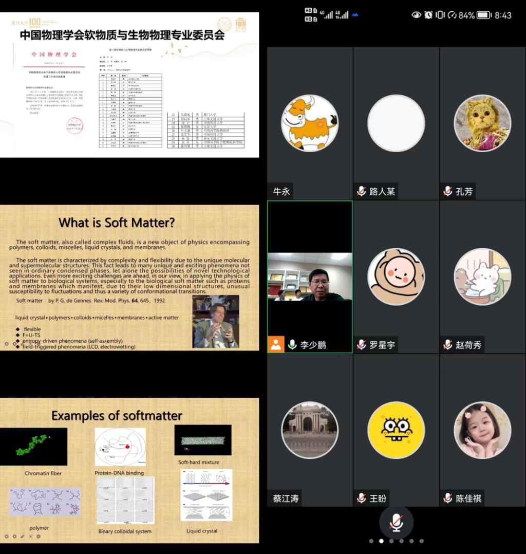 吳晨旭教授首先深入淺出的講述了用Onsager變分原理研究電場(chǎng)驅(qū)動(dòng)下液滴的非平衡態(tài)演化過(guò)程、外力驅(qū)動(dòng)下活性顆粒被生物膜吞噬機(jī)制。最后,吳晨旭教授并分享了在外力誘發(fā)下的包裹角相變、活性顆粒在外力驅(qū)動(dòng)下的動(dòng)力學(xué)相圖等方面取得的最新研究進(jìn)展與成果。吳教授的報(bào)告內(nèi)容豐富,講解生動(dòng),邏輯清晰,使聆聽(tīng)此次報(bào)告的師生對(duì)軟物質(zhì)、液滴浸潤(rùn)動(dòng)力學(xué)等領(lǐng)域研究有更深的理解,拓寬了我校物理學(xué)科的科研視野。
