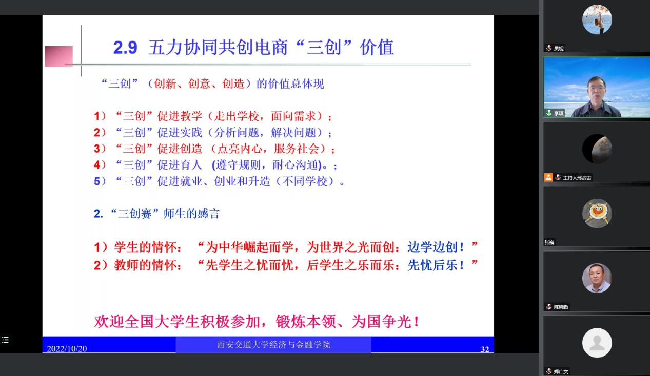 10月20日下午,應(yīng)教務(wù)處、經(jīng)濟(jì)與管理學(xué)院邀請,西安交通大學(xué)二級教授李琪做客我?!敖逃虒W(xué)論壇”,作了題為《跨境電商發(fā)展與創(chuàng)新人才培育》的線上學(xué)術(shù)報(bào)告。本次報(bào)告會由經(jīng)管學(xué)院院長助理邢戰(zhàn)雷主持,學(xué)院教師及學(xué)生代表260余人通過騰訊會議以線上的方式參加了此次報(bào)告。
