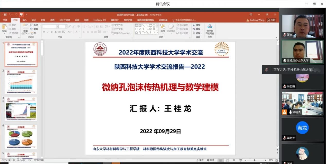 9月29日,受我校科技處、化學(xué)與化工學(xué)院邀請(qǐng),山東大學(xué)王桂龍教授做客我?!扒把乜茖W(xué)報(bào)告”,為我校師生帶來題目為“納微孔泡沫傳熱機(jī)理與數(shù)學(xué)建?!钡木€上報(bào)告。報(bào)告由教務(wù)處副處長(zhǎng)、化工學(xué)院邵亮教授主持,相關(guān)專業(yè)教師、研究生參加了此次報(bào)告。