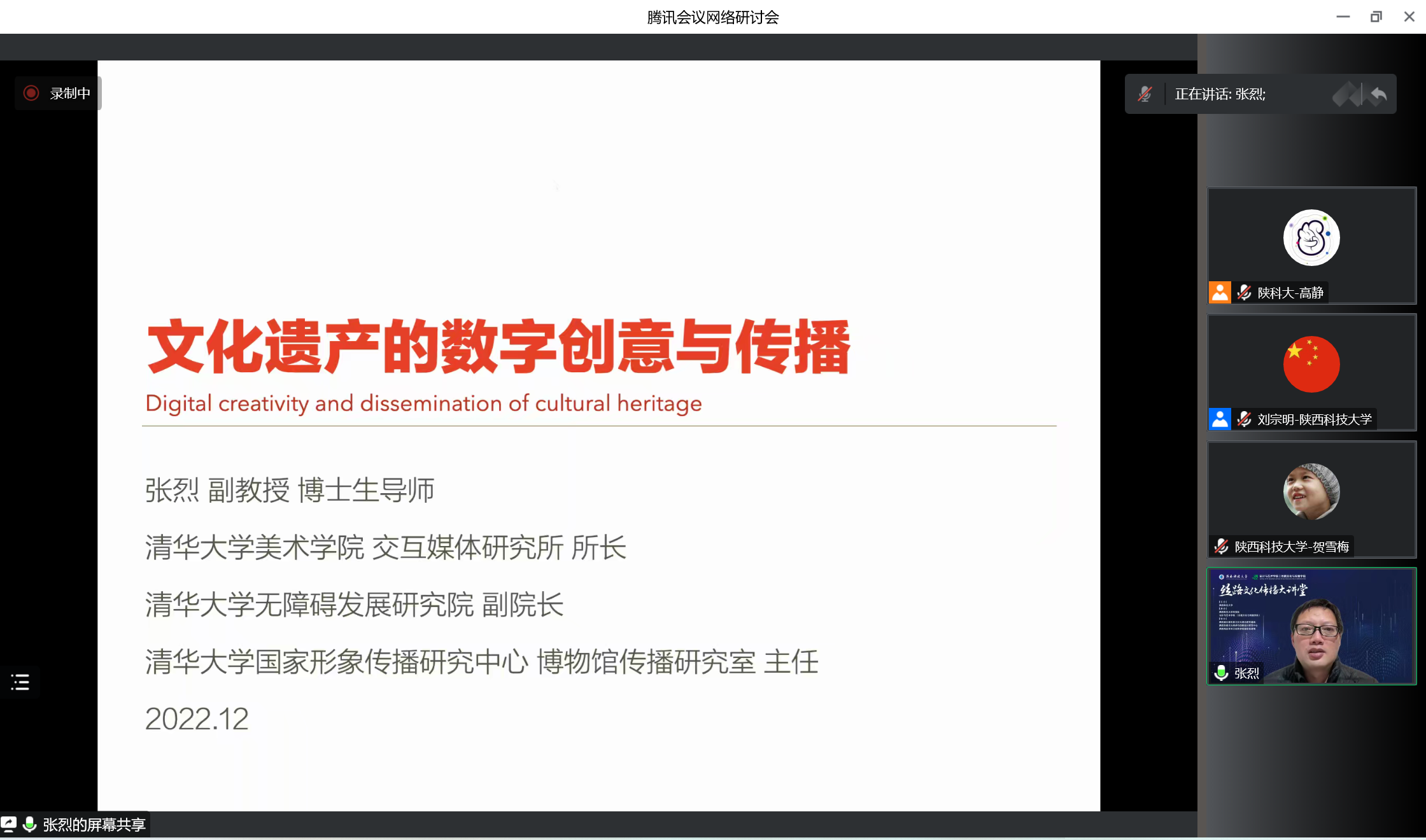 12月16日晚,應我校設計與藝術學院(絲路文化與傳播學院)、科技處及前沿院邀請,清華大學美術學院張烈教授做客我?!扒把乜茖W報告”,作了題為“文化遺產(chǎn)的數(shù)字創(chuàng)意與傳播”的學術報告。報告會由設藝學院院長劉宗明教授主持,設藝學院相關專業(yè)師生及全國藝術設計同行300余人參加此次報告會。