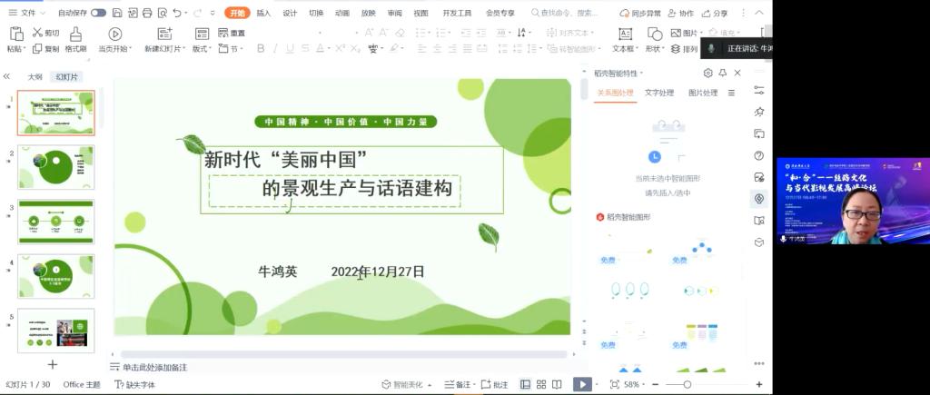 應(yīng)我校絲路文化與傳播學院、科技處及前沿院邀請,南京大學周安華教授、陜西師范大學牛鴻英教授分別于12月27日上午和下午做客我?!扒把乜茖W報告”,分別作了題為“論‘跨民族主義’視域的絲路電影”“新時代‘美麗中國’的影像表達與話語建構(gòu)”的線上學術(shù)報告。報告會由絲路文化與傳播學院院長劉宗明教授主持,學院相關(guān)專業(yè)師生及全國藝術(shù)設(shè)計同行400余人參加了兩場報告會。