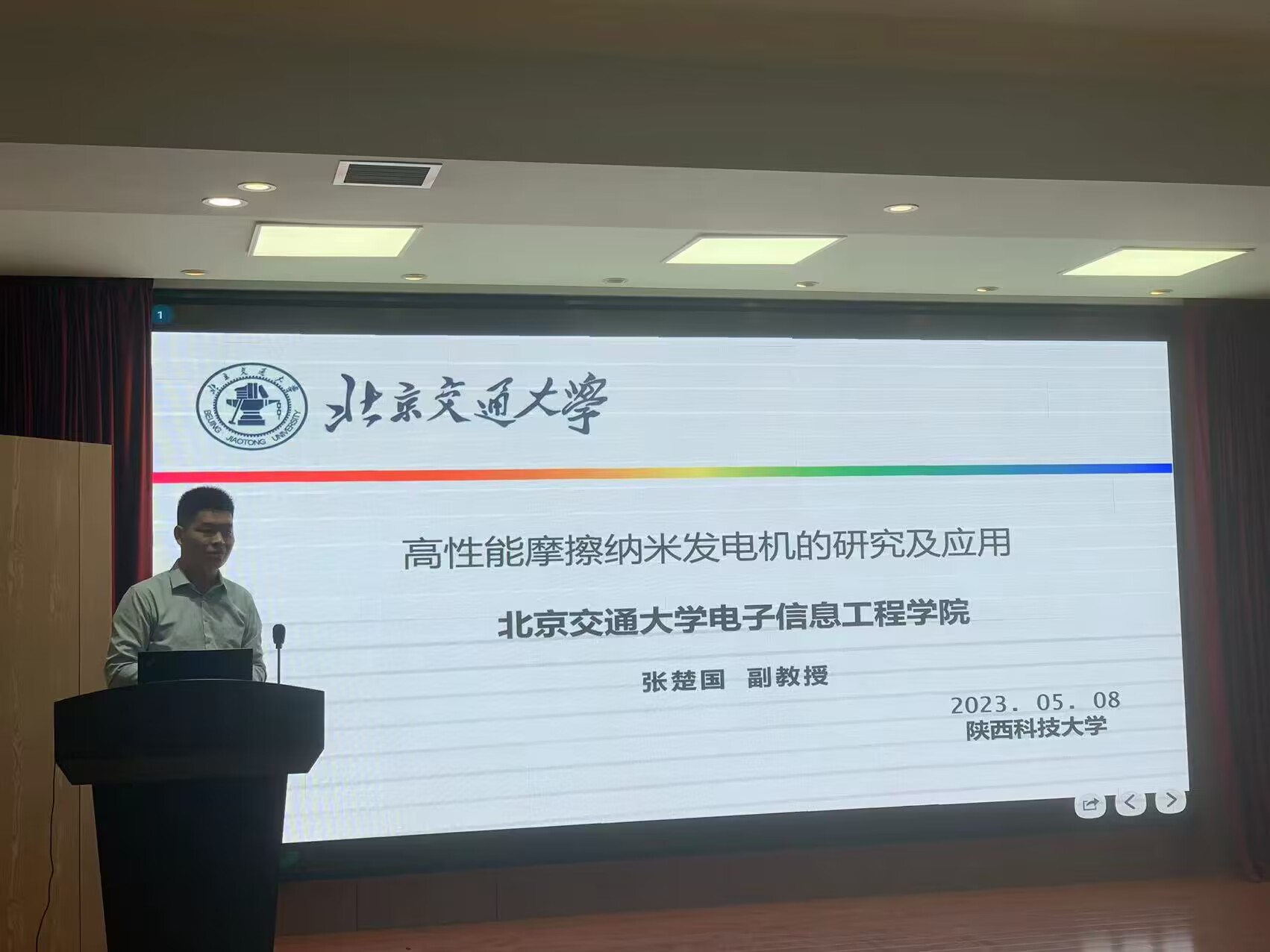 5月8日,應(yīng)我校輕工科學(xué)與工程學(xué)院(柔性電子學(xué)院)和研究生院邀請(qǐng),北京交通大學(xué)張楚國(guó)副教授做客我?!拔囱雽?dǎo)師論壇”,作了題為“高性能摩擦納米發(fā)電機(jī)的研究及應(yīng)用”的學(xué)術(shù)報(bào)告。學(xué)院相關(guān)專業(yè)教師和研究生參加了此次報(bào)告會(huì)。