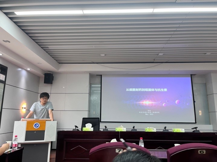劉冰教授基于對噬菌體抑菌新機制及結(jié)合人工智能的研究,從抗生素來源及作用機制等方面為參會師生進(jìn)行了詳細(xì)介紹。他講解了天然抗生素和人工半合成抗生素的主要抑菌機制,指出自然啟示與AI路徑聯(lián)合是研發(fā)的新途徑,合理充分地利用AI有助于科學(xué)研究。在噬菌體抑菌新機制與人工智能的結(jié)合方面提出了指導(dǎo)性的意見。