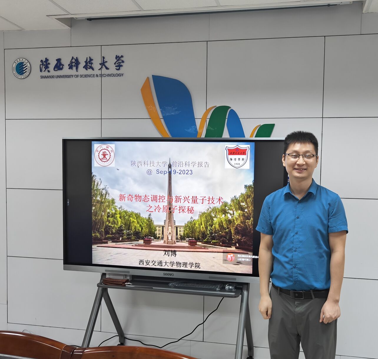 9月19日上午,應(yīng)我校文理學(xué)院、科技處及前沿院邀請(qǐng),西安交通大學(xué)劉博教授做客我?!扒把乜茖W(xué)報(bào)告”,作了題為“新奇物態(tài)調(diào)控與新興量子技術(shù)之冷原子探秘”的學(xué)術(shù)報(bào)告。報(bào)告會(huì)由文理學(xué)院張曉斐教授主持,文理學(xué)院物理系相關(guān)專業(yè)教師、研究生參加了此次報(bào)告會(huì)。