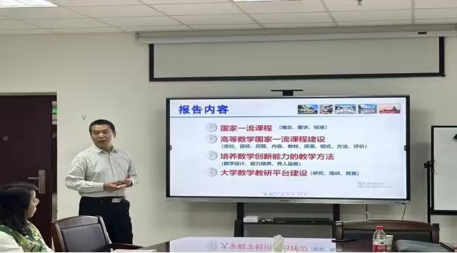 李繼成教授在報告會上首先闡釋了國家一流課程建設(shè)的理念、要求和標(biāo)準(zhǔn),著重介紹了西安交通大學(xué)高等數(shù)學(xué)國家一流課程建設(shè)的經(jīng)驗和成果,并以具體實例說明如何以科學(xué)的教學(xué)方法培養(yǎng)學(xué)生數(shù)學(xué)創(chuàng)新能力。