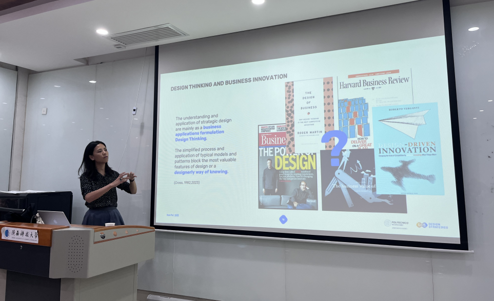 10月23日,應(yīng)我校設(shè)計與藝術(shù)學(xué)院(絲路文化與傳播學(xué)院)邀請,米蘭理工大學(xué)副教授裴雪做客我?!拔囱雽?dǎo)師論壇”,作了題為“設(shè)計驅(qū)動戰(zhàn)略:從企業(yè)創(chuàng)新到系統(tǒng)性轉(zhuǎn)型”的學(xué)術(shù)報告。報告會由設(shè)藝學(xué)院院長劉宗明教授主持,相關(guān)專業(yè)青年教師及研究生等參加了此次報告會。