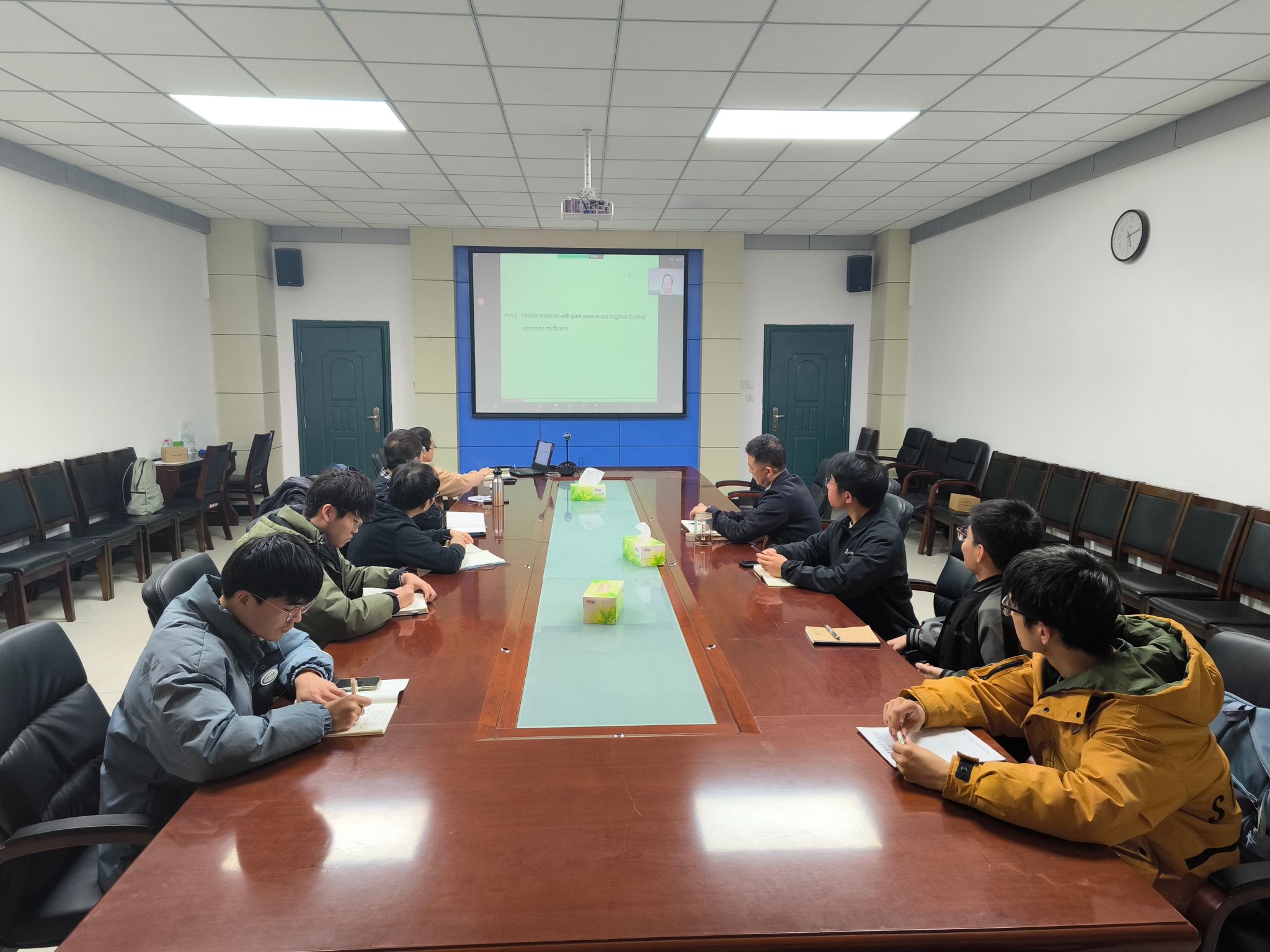 朱漢興首先以負泊松比的材料出發(fā),從熱膨脹系數(shù)、正負泊松比材料的變化形態(tài)、負泊松比材料的結(jié)構(gòu)設(shè)計探討了負泊松比材料的發(fā)展趨勢。報告詳細介紹了負泊松比材料的理論原理,二維與三維負泊松比材料的結(jié)構(gòu)設(shè)計,以及負泊松比材料的發(fā)展趨勢。報告最后分享了朱漢興的研究成果和多孔負泊松比材料的優(yōu)勢。報告結(jié)束后,機電學院師生積極向朱漢興請教關(guān)于負泊松比材料的設(shè)計、制備、發(fā)展趨勢以及等問題,朱漢興做出了熱情的回答和交流。
