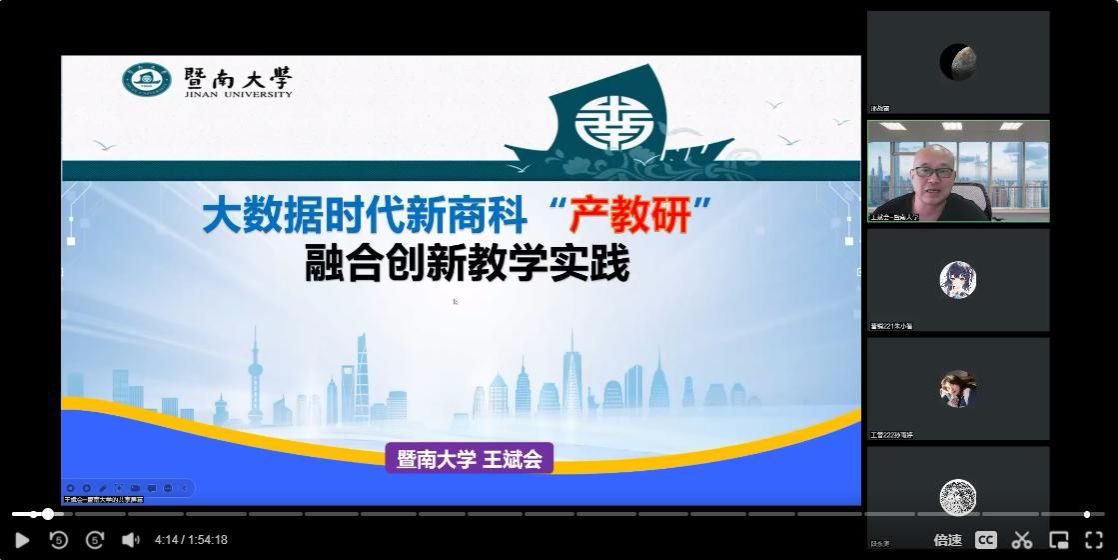 12月6日下午,暨南大學管理學院教授王斌會作客我?!敖逃虒W論壇”,做了題為《大數(shù)據(jù)時代新商科“產(chǎn)學研”融合創(chuàng)新教學實踐》的學術(shù)報告。本次報告由教務(wù)處主辦、經(jīng)濟與管理學院(亞歐貿(mào)易與數(shù)字經(jīng)濟學院)承辦。教師及學生代表100余人通過騰訊會議線上參加了此次報告。