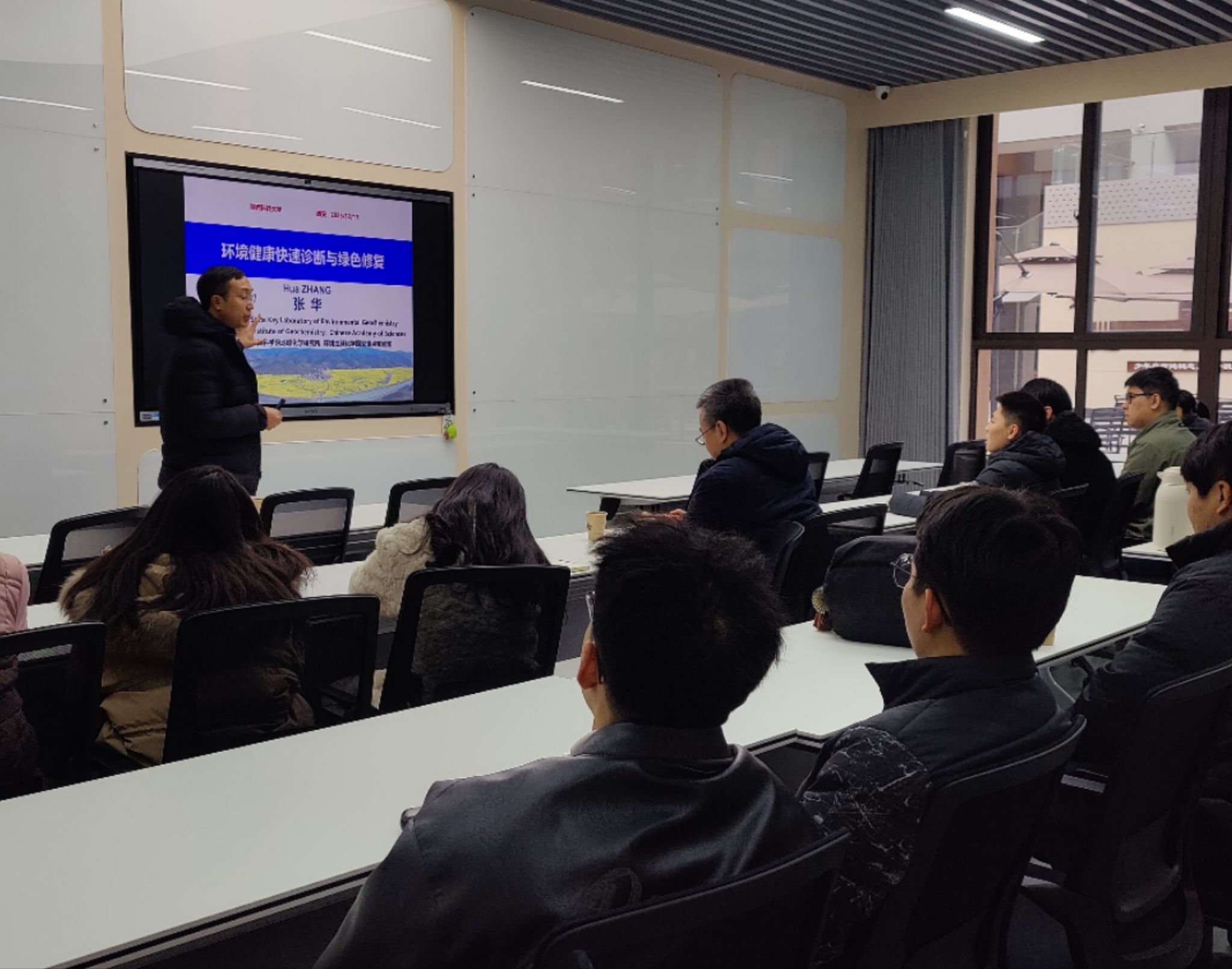 12月17日,應(yīng)我校科技處、前沿院及環(huán)境科學(xué)與工程學(xué)院(碳中和科學(xué)與技術(shù)學(xué)院)邀請,中國科學(xué)院地球化學(xué)研究所張華研究員做客我?!扒把乜茖W(xué)報告”,作了題為“環(huán)境健康快速診斷與綠色修復(fù)”的學(xué)術(shù)報告。報告由環(huán)境學(xué)院院長郭軍康教授主持,環(huán)境學(xué)院教師和部分研究生參加了此次報告會。