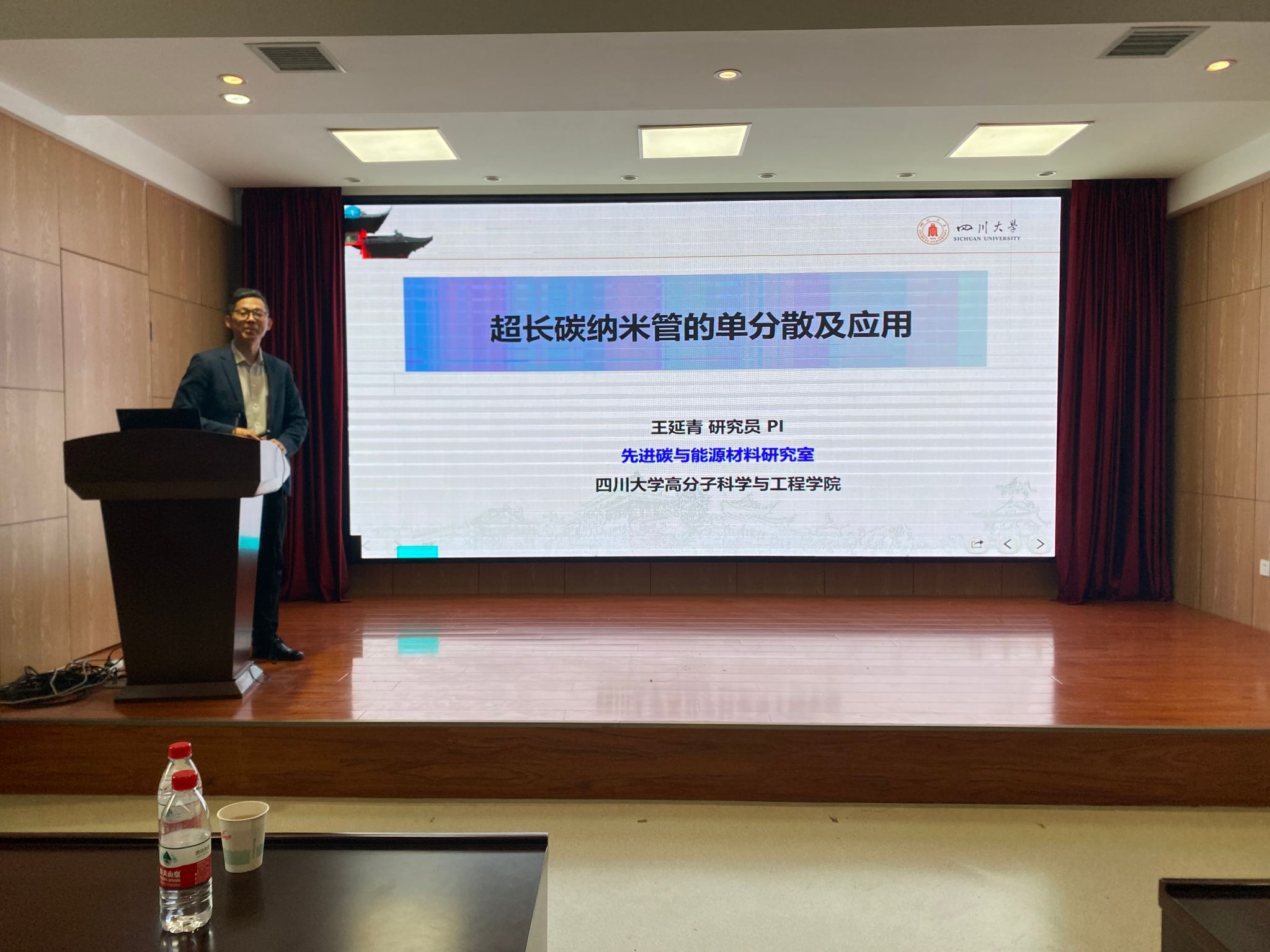 4月14日,四川大學(xué)王延青特聘研究員應(yīng)我校輕工科學(xué)與工程學(xué)院(柔性電子學(xué)院)、科技處及前沿院邀請(qǐng),做客我校“前沿科學(xué)報(bào)告”,作了題為“超長(zhǎng)碳納米管的單分散及應(yīng)用研究”的學(xué)術(shù)報(bào)告。報(bào)告會(huì)由輕工學(xué)院范倩倩副教授主持,學(xué)院相關(guān)專業(yè)教師、研究生及本科生參加了此次報(bào)告會(huì)。