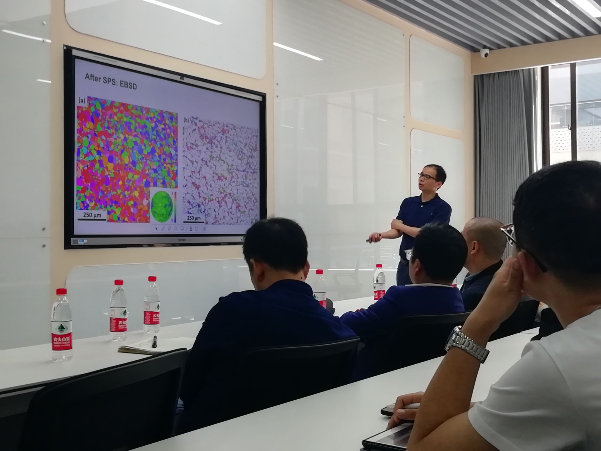 報告會后,官迪凱同我校師生進(jìn)行了互動,悉心回到了教師和研究生提出的問題,進(jìn)一步激發(fā)了同學(xué)們對輕質(zhì)合金的塑性成型加工工藝、內(nèi)在機(jī)制與應(yīng)用技術(shù)的熱情與興趣。隨后,官迪凱在宋文杰的陪同下,參觀了先進(jìn)金屬材料與加工研究中心實(shí)驗(yàn)室、陜西科技大學(xué)-中國航天攪拌摩擦焊接聯(lián)合實(shí)驗(yàn)室、學(xué)?,F(xiàn)代分析測試中心,官迪凱對研究中心所具備的從合金制備、加工改性、性能測試、表征分析等全流程硬件設(shè)施表示肯定,也表示利用研究中心所擁有的攪拌摩擦焊機(jī)為平臺開展進(jìn)一步的科研合作。