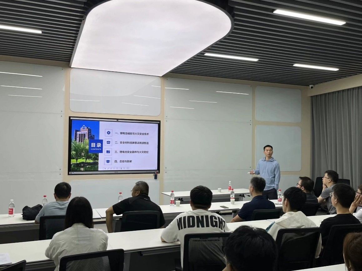 在報告中,朱紀欣教授結(jié)合電動汽車、大型儲能、移動電子設(shè)備等重大應(yīng)用與安全需求,生動有趣的介紹了鋰電池服役過程的材料失效與熱聚集,誘發(fā)性能衰減與熱失控等問題,同時,朱教授圍繞“鋰電池全壽命周期安全”,從鋰電池的安全復(fù)合材料制造、材料服役機制,熱失控監(jiān)測與防控技術(shù)等方面,詳細闡述了鋰電池全壽命周期的材料安全、工況安全和火災(zāi)安全設(shè)計理念。報告內(nèi)容豐富,既有理論高度,又結(jié)合了實踐經(jīng)驗,使在場師生受益匪淺。