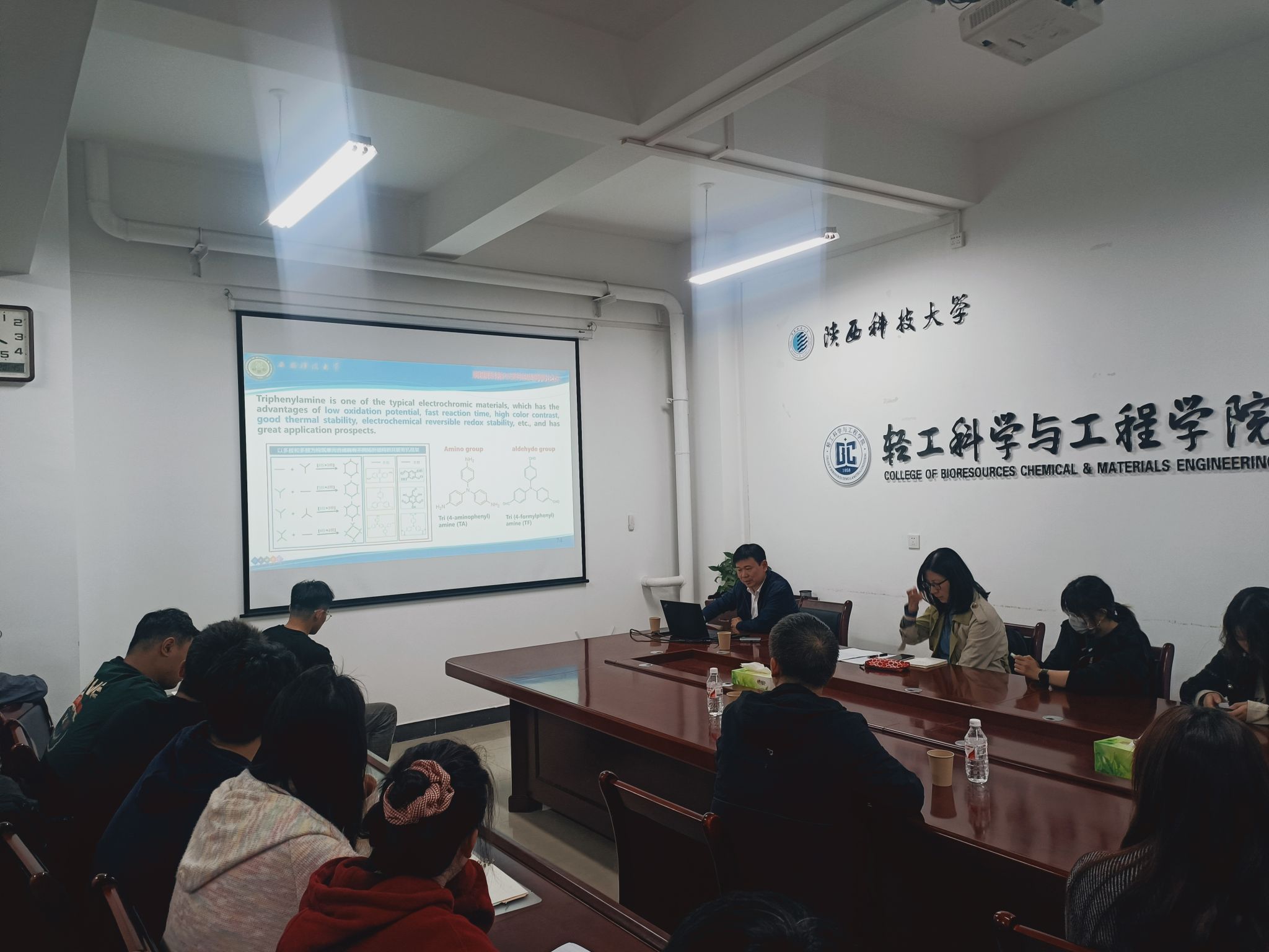 2024年10月23日下午,應(yīng)我校輕工科學(xué)與工程學(xué)院(柔性電子學(xué)院)和研究生院邀請,西安科技大學(xué)熊善新教授和西安工業(yè)大學(xué)張文治副教授做客我?!拔囱雽?dǎo)師論壇”,分別做了題為“共價有機(jī)框架光電功能材料與器件”和“聚合物基電致變色材料的結(jié)構(gòu)設(shè)計與性能研究”的學(xué)術(shù)報告,報告會由輕工學(xué)院院長呂斌主持,學(xué)院相關(guān)專業(yè)教師和研究生參加了本次報告會。