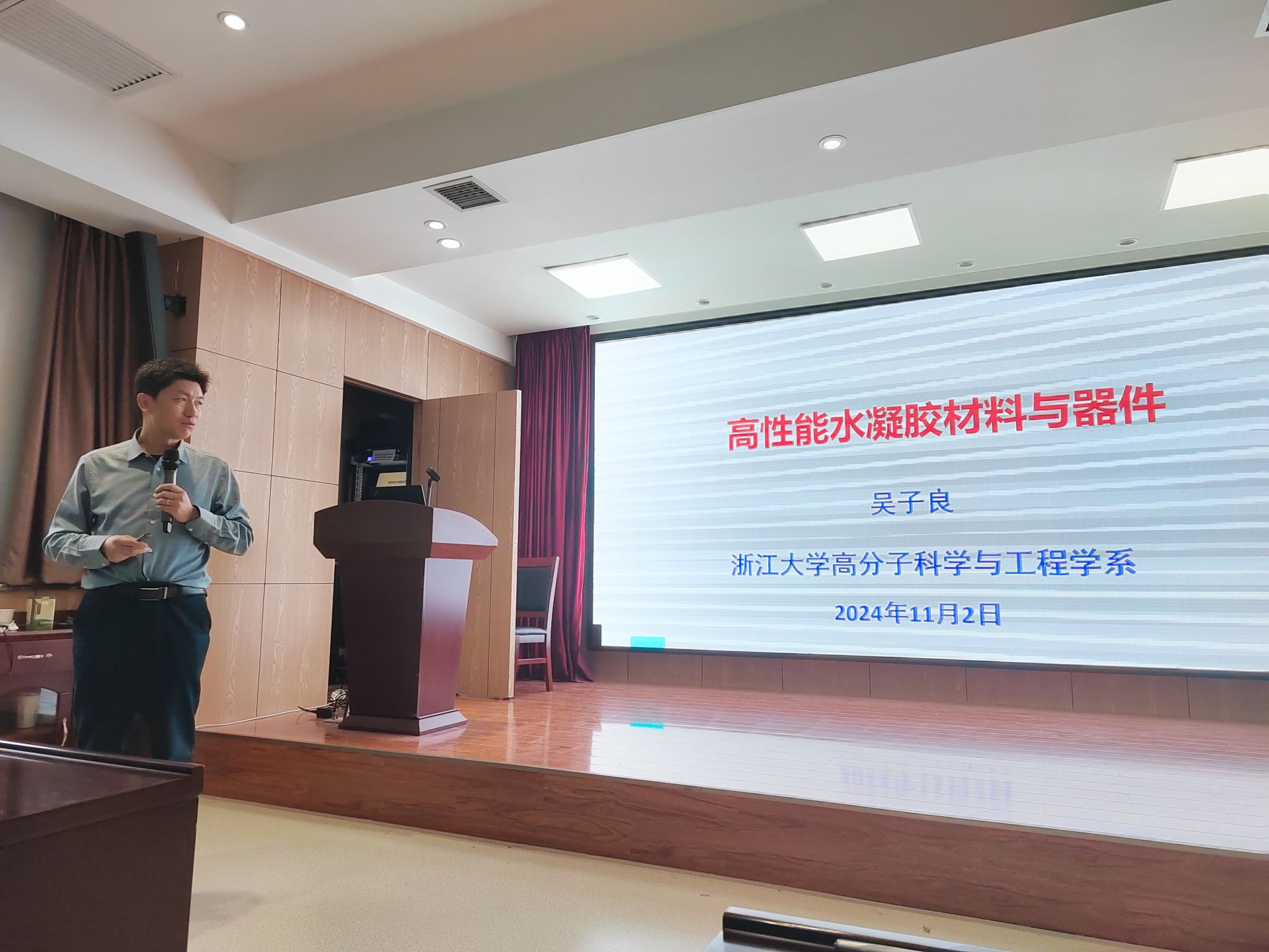 11月2日下午,應我校輕工科學與工程學院(柔性電子學院)、科技處、研究生院邀請,浙江大學吳子良教授、華南理工大學孫桃林研究員做客我?!扒把乜茖W報告”和“未央導師論壇” ,分別作了題為“高性能水凝膠與器件”和“環(huán)形高分子摻雜聚合物網(wǎng)絡的動力學研究”的學術(shù)報告,學院相關專業(yè)教師和研究生參加了此次報告會。
