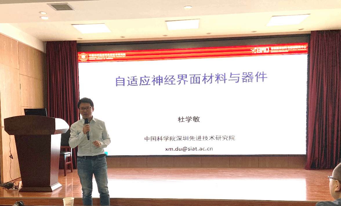 11月5日上午10:00,應(yīng)我校輕工科學(xué)與工程學(xué)院(柔性電子學(xué)院)、科技處及前沿院的邀請,中國科學(xué)院深圳先進(jìn)技術(shù)研究院智能醫(yī)用材料與器械研究中心主任杜學(xué)敏研究員做客我?!扒把乜茖W(xué)報(bào)告”,作了題為“自適應(yīng)神經(jīng)界面材料與器件”的學(xué)術(shù)報(bào)告。報(bào)告由輕工科學(xué)與工程學(xué)院(柔性電子學(xué)院)副院長劉國棟主持,我校相關(guān)專業(yè)教師、研究生及本科生參加了此次報(bào)告會(huì)。