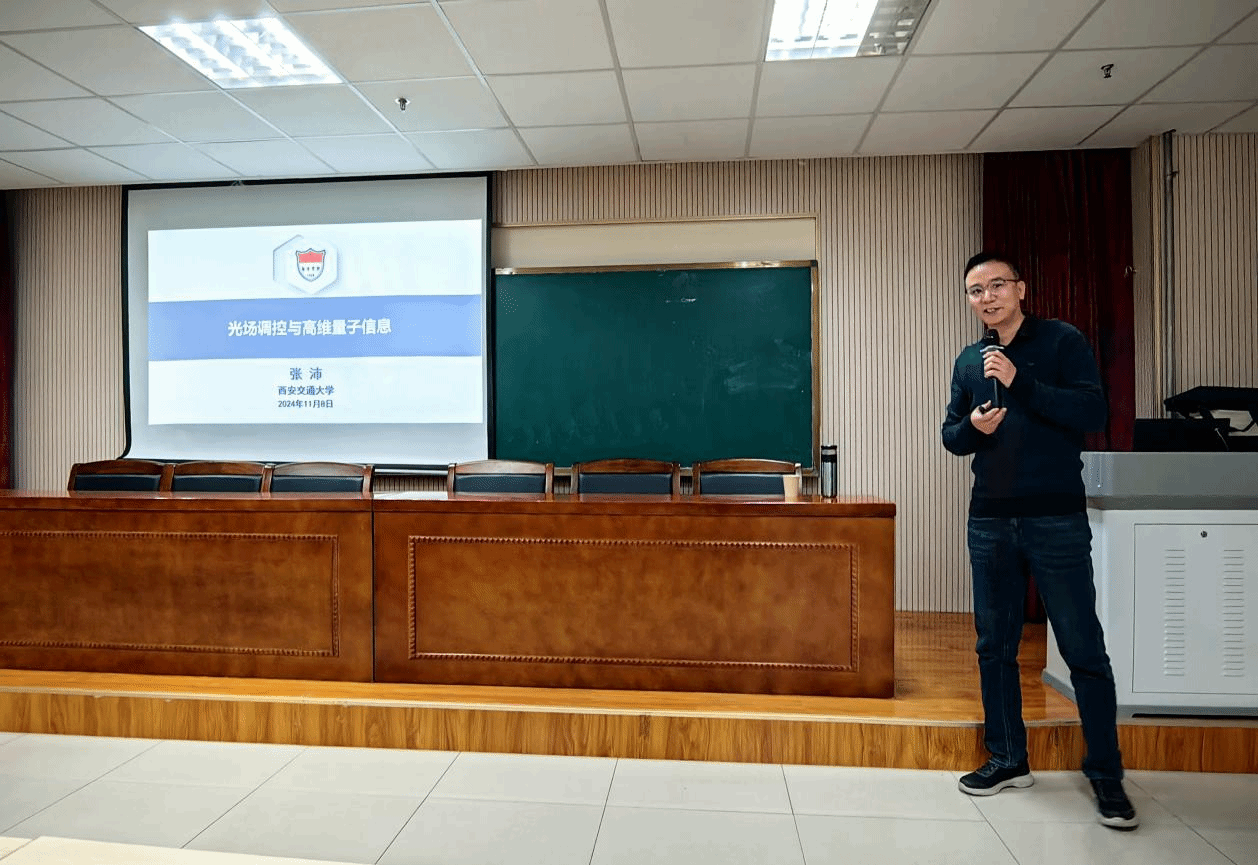 11月8日上午,應(yīng)我校物理與信息科學(xué)學(xué)院、科技處及前沿院邀請,西安交通大學(xué)張沛教授做客我?!扒把乜茖W(xué)報告”,報告題目為“光場調(diào)控與高維量子信息”。報告會由物理學(xué)院副院長羅道斌主持,學(xué)院相關(guān)專業(yè)教師、研究生參加了此次報告會。