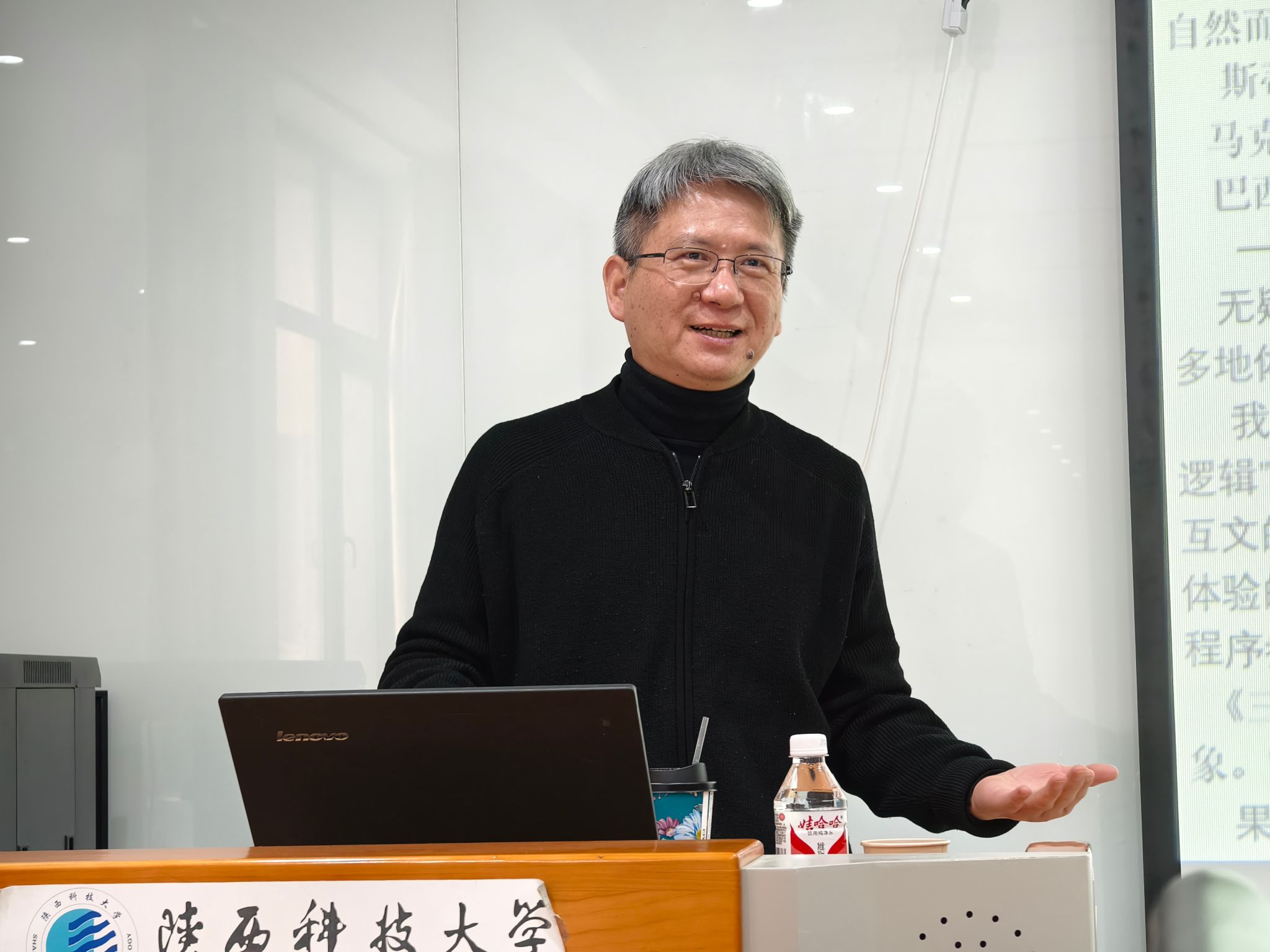 12月16日上午,應(yīng)我校設(shè)計(jì)與藝術(shù)學(xué)院、科技處及前沿院邀請(qǐng),教育部高校戲劇與影視學(xué)教學(xué)指導(dǎo)委員會(huì)委員、北京大學(xué)藝術(shù)學(xué)院教授、博士生導(dǎo)師,陳旭光做客我?!扒把乜茖W(xué)報(bào)告”,在設(shè)藝學(xué)院326會(huì)議室作了題為“人機(jī)一體、虛擬現(xiàn)實(shí)與倫理預(yù)警——人工智能時(shí)代的電影工業(yè)美學(xué)新思考”的學(xué)術(shù)報(bào)告。報(bào)告會(huì)由設(shè)藝學(xué)院副院長(zhǎng)米高峰主持,相關(guān)學(xué)科專(zhuān)業(yè)師生參加報(bào)告會(huì)。
