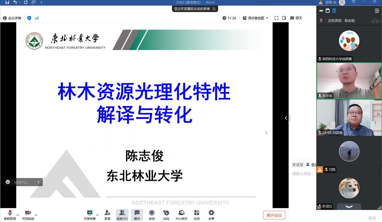 12月27日,受我校輕工科學(xué)與工程學(xué)院(柔性電子學(xué)院)、科技處及前沿院邀請(qǐng),東北林業(yè)大學(xué)陳志俊教授做客我?!扒把乜茖W(xué)報(bào)告”,做了題為“林木資源光理化特性解譯與轉(zhuǎn)化”的線上學(xué)術(shù)報(bào)告。報(bào)告由輕工學(xué)院副院長(zhǎng)劉國(guó)棟主持,輕工學(xué)院部分教師及學(xué)生聆聽了本次報(bào)告。