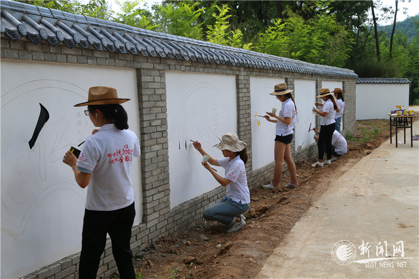 設計與藝術學院暑期社會實踐團正在為王石凹村繪制政策形象墻