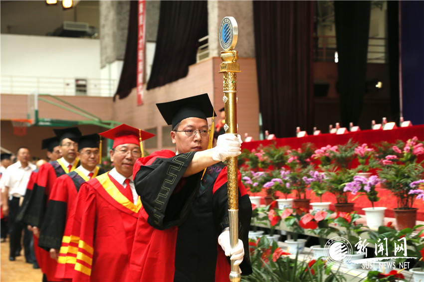 伴著激昂的旋律,校領(lǐng)導(dǎo)及學(xué)位評(píng)定委員會(huì)委員在陜西科技大學(xué)權(quán)杖的引領(lǐng)下緩步邁入文體館,拉開(kāi)了2016屆畢業(yè)典禮暨2016年學(xué)位授予儀式的序幕。
