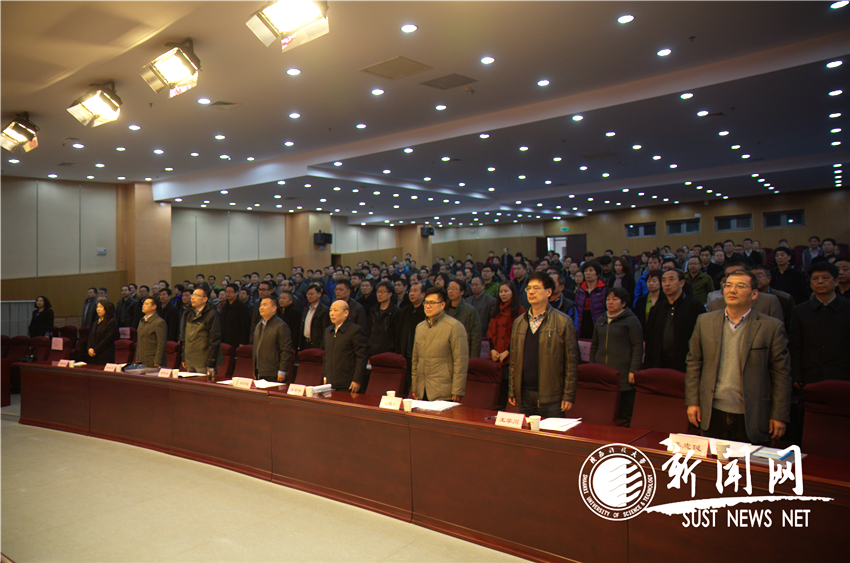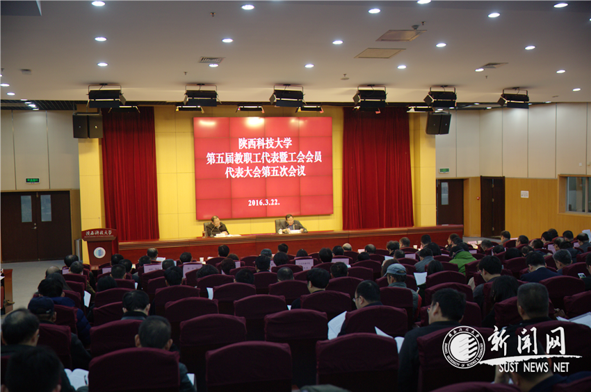 在雄壯的國歌聲中,陜西科技大學第五屆教職工代表暨工會會員代表大會第五次會議在學術(shù)報告廳隆重開幕。本次會議為期一天半,主要任務(wù)是:聽取學校工作報告;審議《陜西科技大學“十三五”教育事業(yè)發(fā)展規(guī)劃(討論稿)》,審議學校財務(wù)工作報告、工會工作報告;審議《陜西科技大學教職工代表大會實施辦法》(修訂)(討論稿)等相關(guān)議題;全面貫徹落實中央方針政策和全省教育工作會議精神,進一步動員全校教職工增強改革意識,凝聚改革共識,切實把思想和行動統(tǒng)一到學校決策部署上來,為實現(xiàn)“十三五”規(guī)劃目標任務(wù)建功立業(yè)。