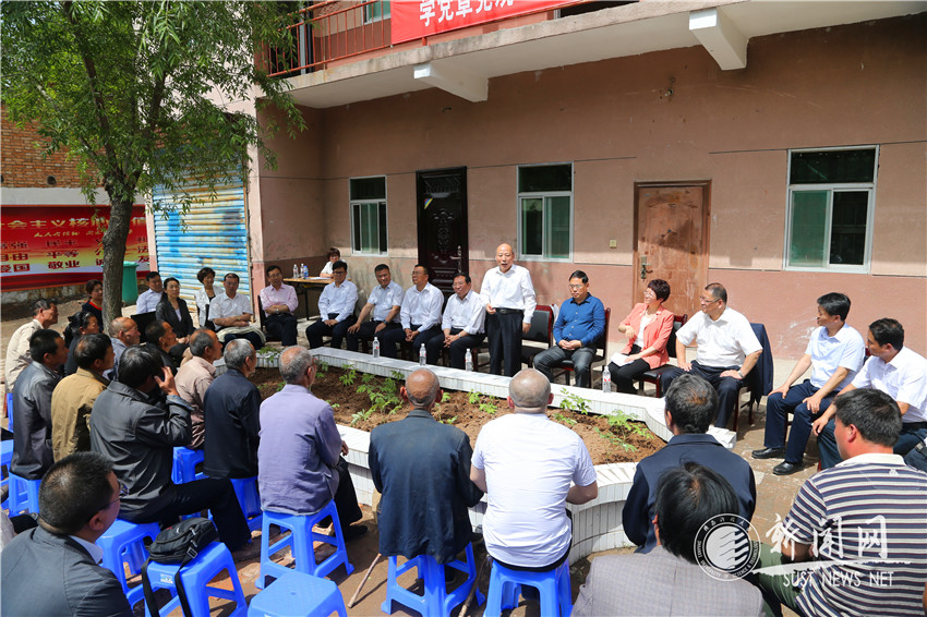 一下車,學(xué)校黨政領(lǐng)導(dǎo)就受到年過八旬的方顯會(huì),已過七旬的張萬春、杜新民等村民的熱情迎接?!澳銈兒茫先思?,我們來看你們了!”“歡迎,歡迎,走了這么遠(yuǎn)的路,辛苦了”。樸素的話語,親切的交流,大家手拉著手來到村委會(huì)召開扶貧現(xiàn)場推進(jìn)會(huì)。分管扶貧工作的校紀(jì)委書記王樹茂主持會(huì)議,介紹了學(xué)校近20年來扶貧幫困工作的情況,并表達(dá)了學(xué)校黨政領(lǐng)導(dǎo)班子以在扶貧點(diǎn)召開扶貧工作現(xiàn)場推進(jìn)會(huì)征求村委會(huì)和村民群眾工作意見建議的良好意愿。