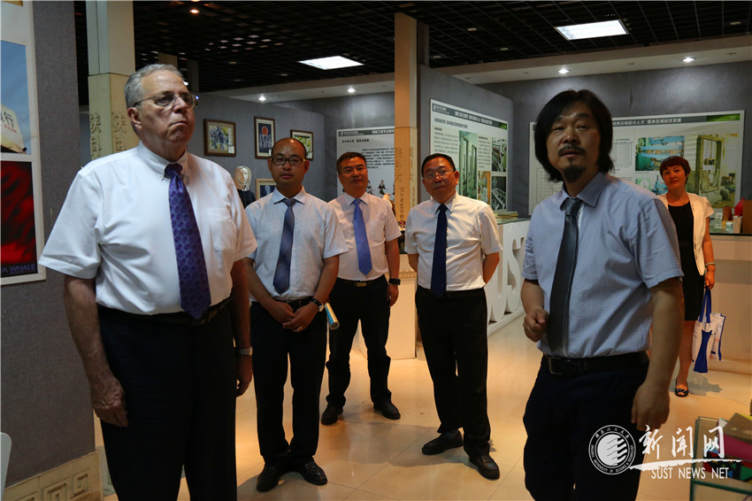 座談結(jié)束后, 尼爾· 薩洛寧、校長(zhǎng)助理翁新龍?jiān)谝?shū)志、楊欲曉等的陪同下,參觀(guān)了設(shè)計(jì)與藝術(shù)學(xué)院特色展室、機(jī)電工程學(xué)院實(shí)驗(yàn)室和學(xué)生實(shí)踐中心。