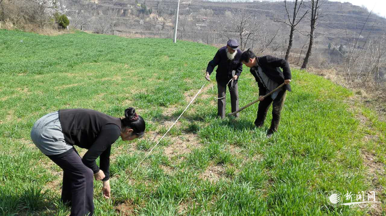 村民在種植花椒樹前丈量行距