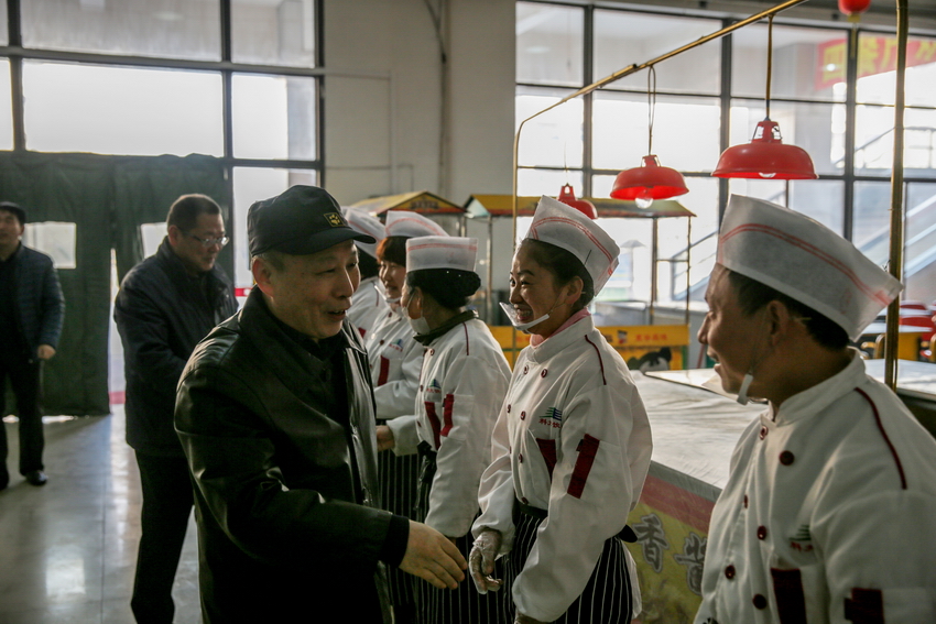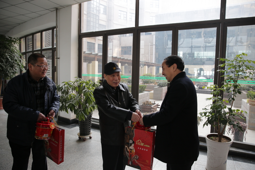 黨委書(shū)記潘中偉(圖中)、紀(jì)委書(shū)記王樹(shù)茂(圖左一)看望慰問(wèn)春節(jié)值班教職工