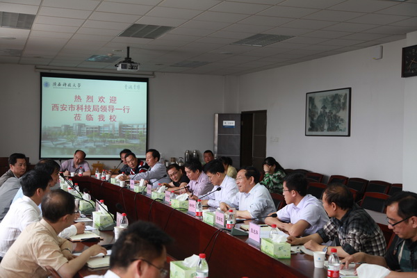 姚書志代表學校向高繼平一行蒞臨我校進行調(diào)研表示熱烈歡迎,并介紹了學校的基本情況。他希望西安科技局今后繼續(xù)大力支持我校的科研工作,推動學??蒲谐晒?wù)西安地方經(jīng)濟發(fā)展上新臺階。
