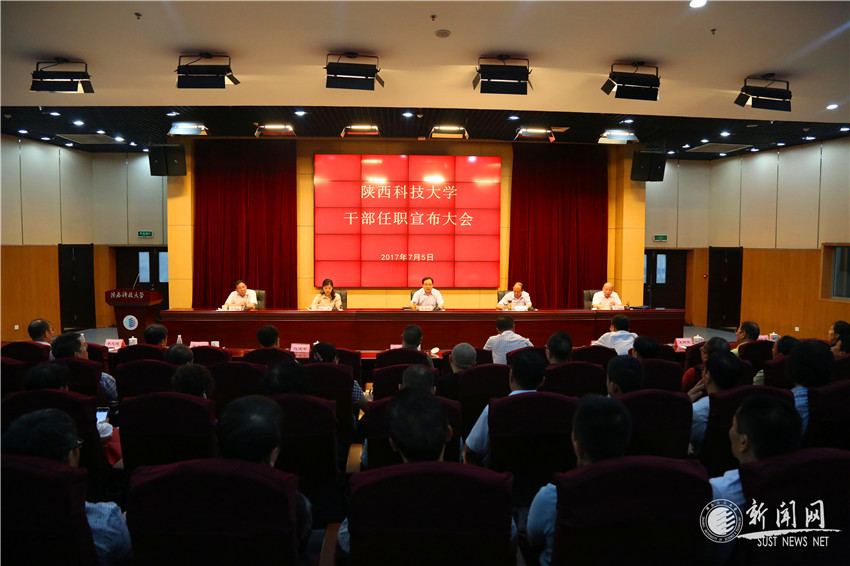 7月5日上午,我校召開干部任職宣布大會,宣布省委、省政府關于學校領導班子調整的決定。中共陜西省委決定,提名姚書志同志為陜西科技大學黨委書記候選人,潘中偉同志因年齡原因,免去其陜西科技大學黨委書記職務。陜西省政府決定,免去姚書志同志陜西科技大學校長職務。省委組織部副部長王秉琦出席會議并講話,省委高教工委書記董小龍主持會議。
